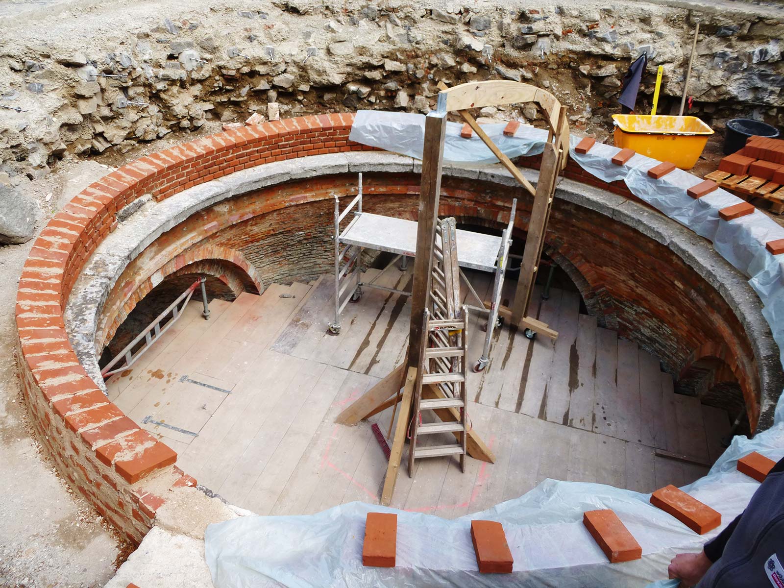 Vexierwassergrotte im Bergpark Wilhelmshöhe, Sanierung Grotten, Umgang und Stützwände